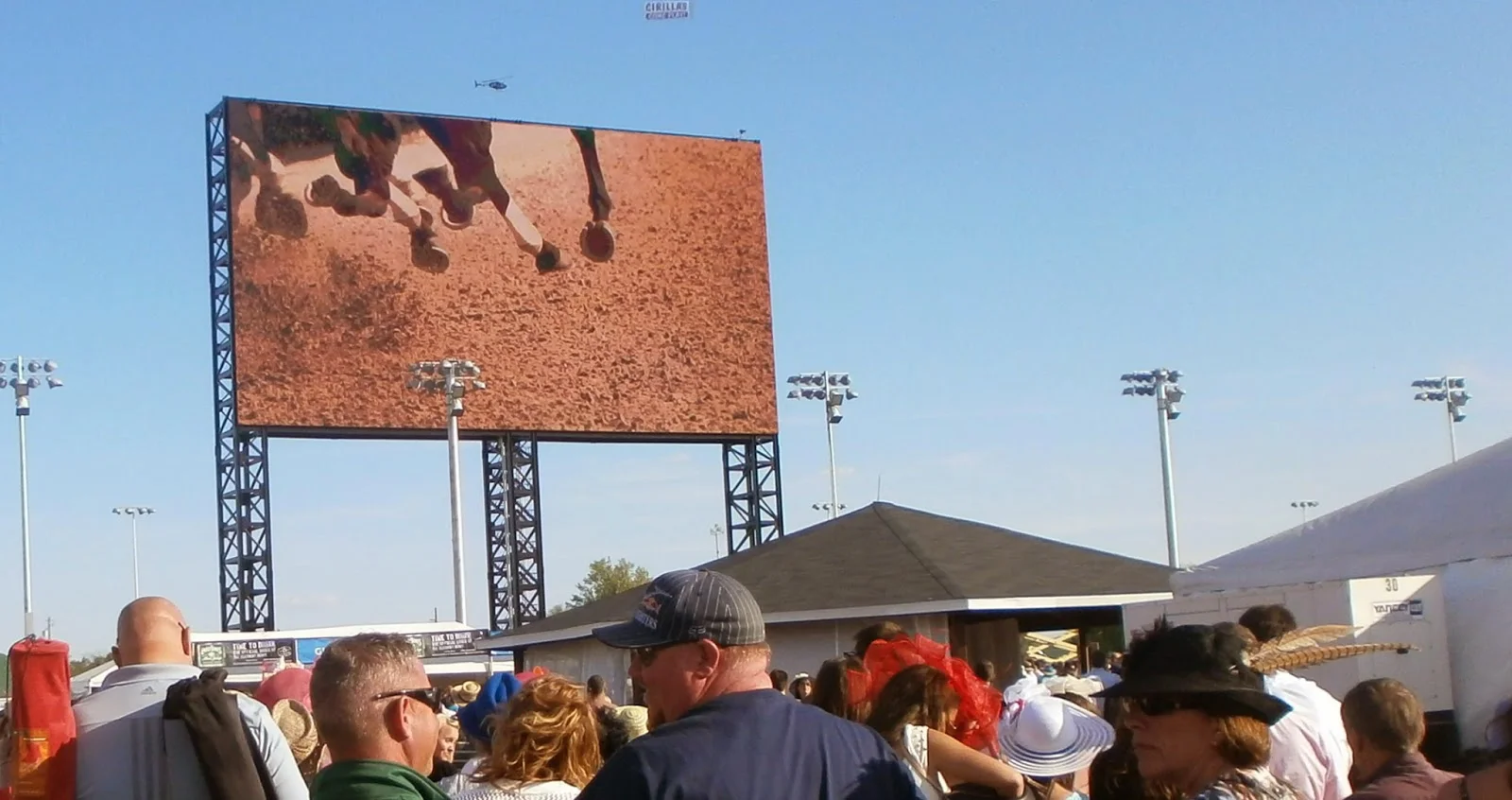 We actually never even saw a single horse... but its okay! There are huge screens everywhere that show you every intoxicating second of the two minute race.