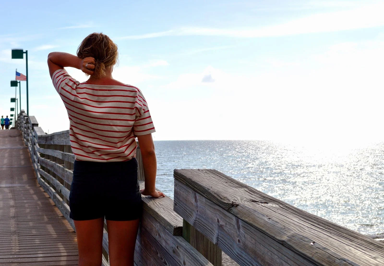 I’ve always wanted to wear a shirt to the beach that says BEACH. (Okay, well, I’ve always wanted to do it since I bought this shirt that says BEACH on clearance at Madewell). The slight problem was that this shirt is a sweatshirt material & I don't know if you are aware, but Florida is H.O.T.