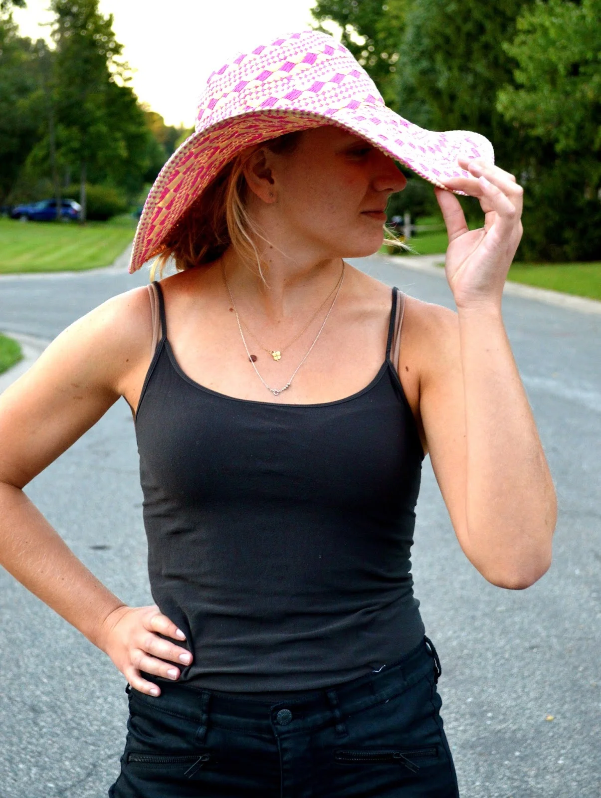 Even though last week I brought the wool baseball cap back into my wardrobe, I'm not quite ready to put my summer hats away (partially because I don't know where to store them in The Studio...). So, sweet Magical Simplicity readers, let's transition! This amazing summer hat called to me from a boutique at The Market while I was visiting Colleen in NYC. The moment I was told about it's end-of-summer 40% sale - it was mine. It's bright pink + so obviously a sun hat. I suppose that makes it's natural habitat the sizzling summer months. But I think I can stretch it out :)
