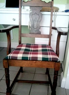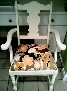 Thus I present: the magical makeover! From chair on the left (a hand me down from the neighbors) to the very Annie chair on the right: it took a can of white spray paint, a clearance patterned fabric, staples and a staple gun, and a little extra stuffing from the basement. What do you think!?