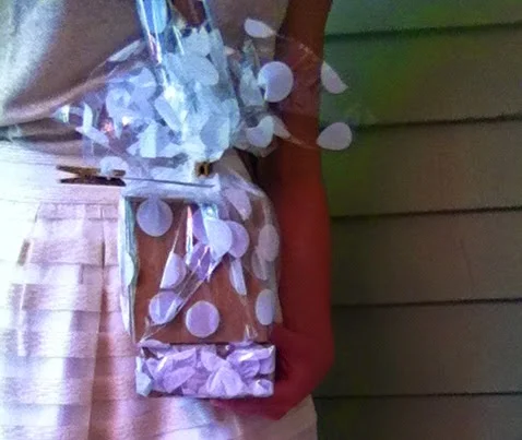 3. Wrapping: Like most things in my life, I waited til the last minute for this. But if my many cousins' showers & weddings taught me one thing, it's to never underestimate the power of cellophane. It's a little known fact that everything looks better when you can sneak a peek through polka-dots.